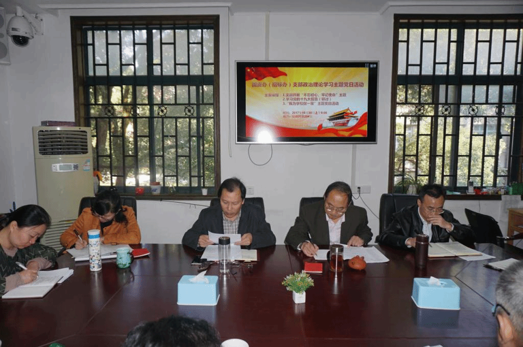 2017年10月30日上午,国资办党支部组织召开以“不忘初心,牢记使命”为专题的政治理论学习主题党日活动。会议伊始,周政华书记部署了国资招标办党支部“不忘初心,牢记使命”主题教育学习活动计划,介绍了学习教育活动的主题与任务、组织与具体安排。活动以新时代、新思想、新征程为主线,按照上级和学校党委的部署和要求,深入学习领会党的十九大精神,结合学校开展的办学思想大讨论活动,统一思想、提高认识、凝聚力量,开展丰富多彩的学习教育活动,为推进学校双一流建设提供强力支撑。