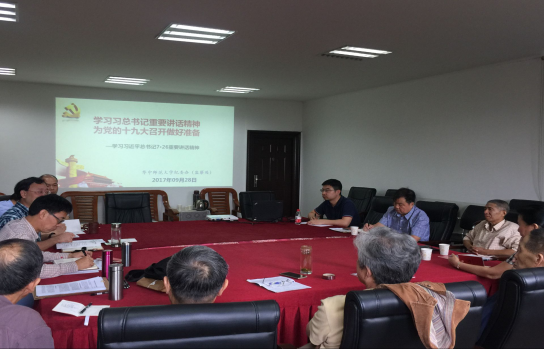 9月28日,纪委办(监察处)党支部召开党员大会,集体重温入党誓词,学习《中国共产党章程》,学习习近平总书记“7•26”重要讲话精神、教育部党组印发的《关于加强新时期高校教师党支部建设的意见》等相关内容,深入开展“两学一做”,以优异成绩迎接党的十九大召开。