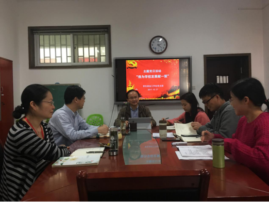 为积极响应校党委相关精神,在办学思想大讨论活动期间形成群策群力、共谋发展的浓厚氛围,加快推进学校“双一流”建设目标,10月27日下午,就业处党支部在就业处110室组织开展“我为学校发展献一策”主题党日活动。活动由支部书记、就业处处长王茂胜同志主持召开,就业处支部全体党员参加。