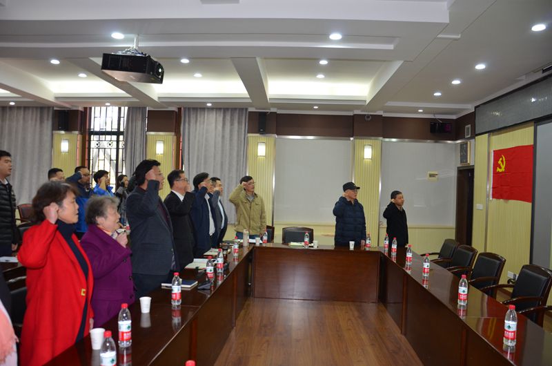 首先,全体党员起立奏唱国歌。接着,张明生同志带领全体党员重温入党誓词,徐洪峰同志和蔡鹏同志诵读党章部分章节。