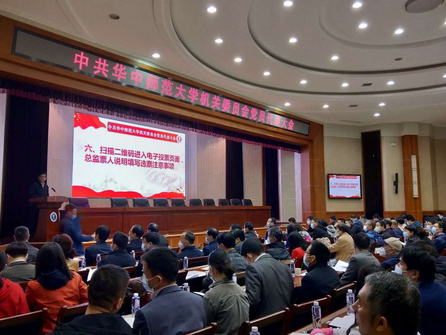 学校办公室主任、机关党委书记、保密委员会办公室主任陈迪明同志主持会议。机关党委委员、政策法规研究室、综合改革办公室主任洪早清同志宣读了《关于同意中共华中师范大学机关委员会补选出席中国共产党华中师范大学第十二次代表大会代表候选人预备人选的批复》,机关党委委员、学校办公室副主任、机关党委副书记王雨露同志宣读并提交了大会表决通过选举办法。