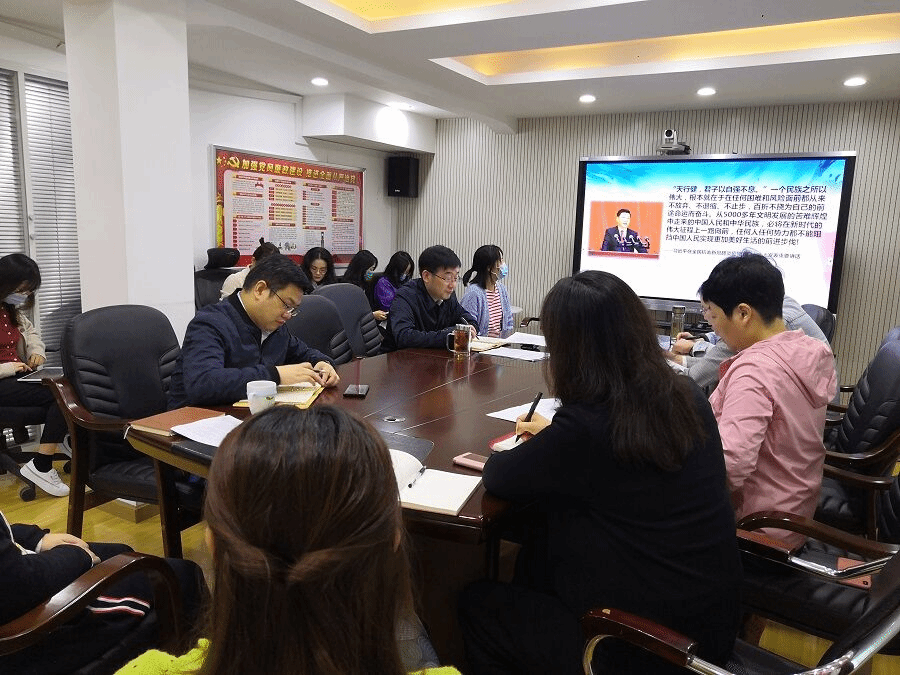 大家一起学习了近平在全国抗击新冠疫情表彰大会上的讲话;习近平在纪念中国人民抗日战争暨反法西斯战争胜利75周年座谈会上的讲话;中共中央办公厅印发的《关于巩固深化“不忘初心、牢记使命”主题教育成果的意见》。