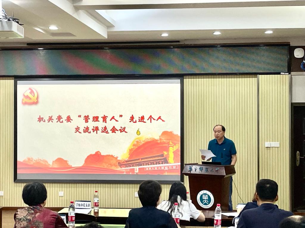 7月5日下午,机关党委2020-2022年度“管理育人”先进个人评选交流会在行政楼二楼会议室举行,机关党委委员、机关各党支部书记参加评审。