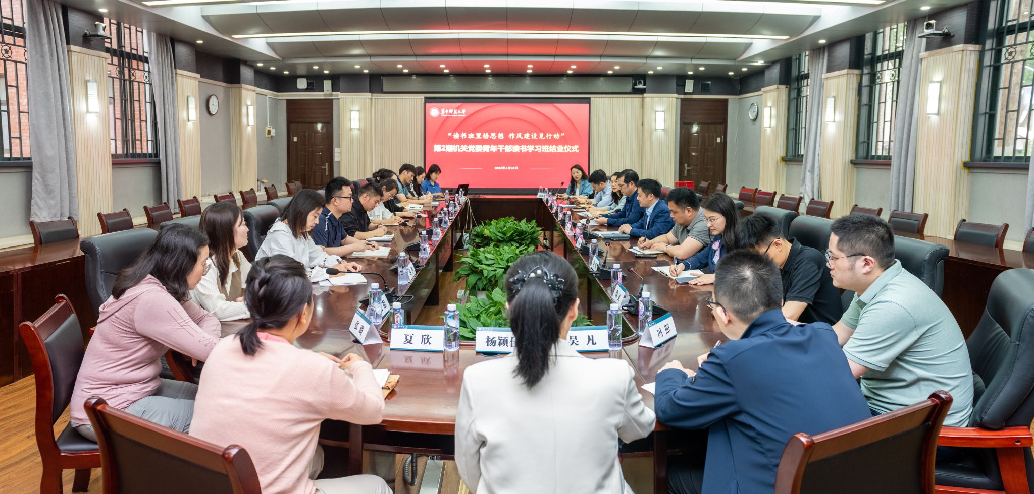 陈迪明对所有学员顺利结业表示祝贺。他表示,青年干部作为学校事业发展的“生力军”,承载着立德树人的初心与强校兴校的使命。开展读书学习班,正是学校党委着眼于建设高素质干部队伍、推动事业高质量发展的重要举措。机关党委精心设计了“理论学习+实践淬炼+能力提升”的立体化培养体系,全体学员以饱满的求知热情和进取精神投入学习,充分展现了华师青年干部的良好风貌。这样的学习既是“充电赋能”,更是为大家投身事业发展新征程“校准航向”。他指出,机关青年干部要进一步牢固树立学习意识、创新意识、服务意识和廉洁意识,要自觉提高站位,以青春朝气破除作风积弊,用创新思维提升服务效能,扎实推进机关深入贯彻中央八项规定精神学习教育暨作风建设专项行动,在“学、查、亮、改、创”各环节中主动树标杆、扛责任,为建设让师生满意、让党委放心的模范机关注入青春动能。