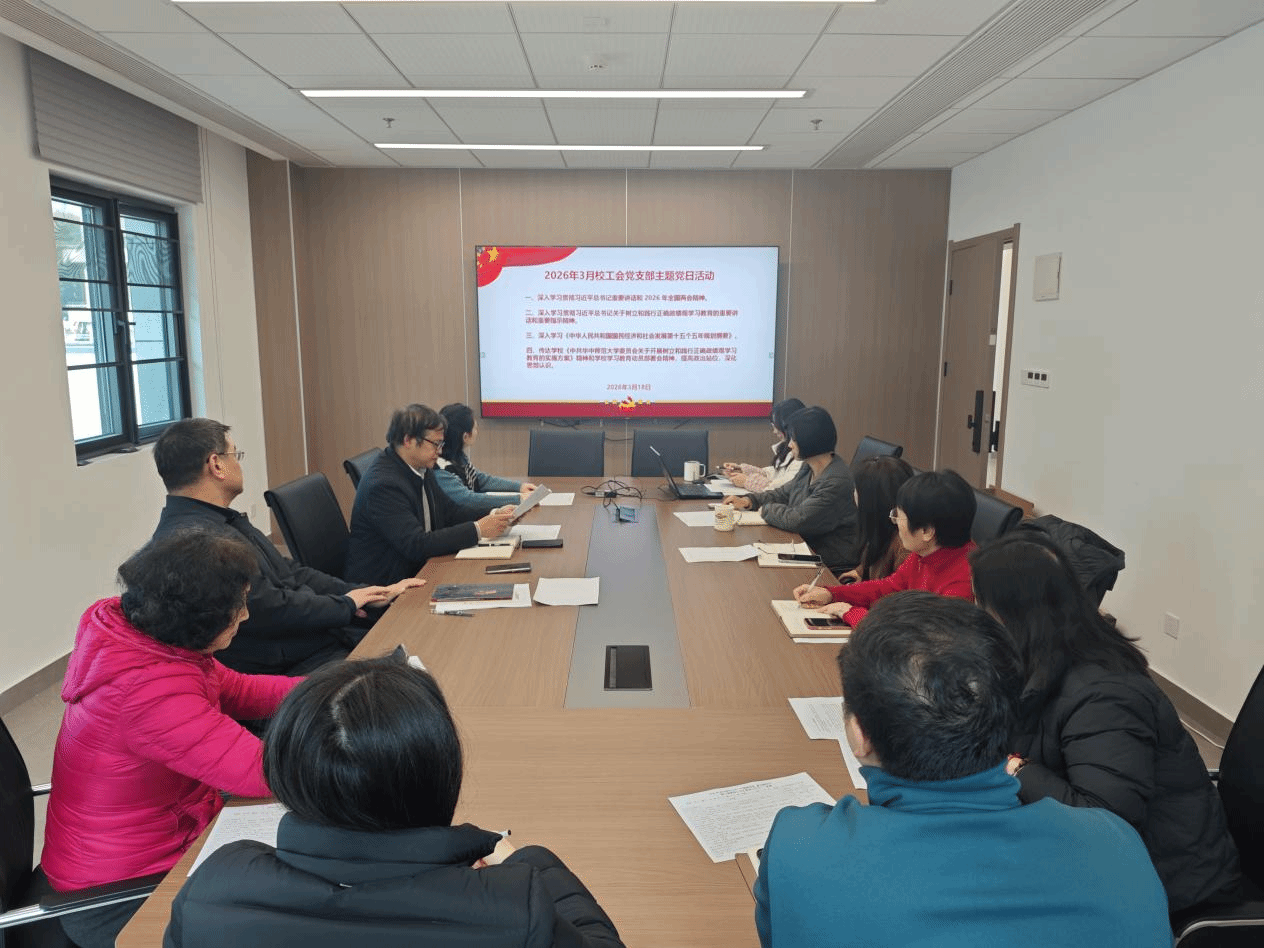 校工会党支部随后开展3月支部主题党日活动,传达学习了习近平总书记系列重要讲话和指示精神、2026年全国两会精神以及“十五五”规划纲要中关于教育的内容。