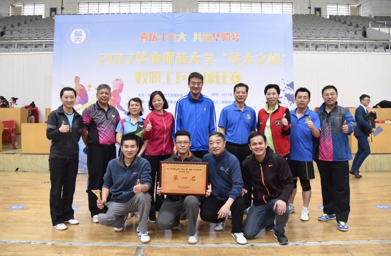 10月28日,2017年度华中师范大学“华大之悦”教职工乒乓球比赛在佑铭体育馆隆重开幕,近30支代表队参加了比赛,经过两天的激烈竞赛,党政机关代表队一路“过关斩将”,以全胜的战绩夺得冠军。这是继2008年夺冠后,9年来党政机关代表队重夺冠军。