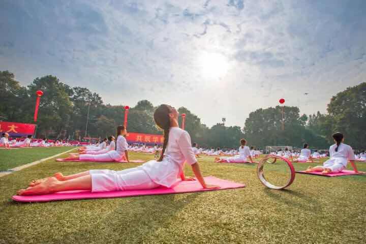 11月2日,桂子山上艳阳高照、景色旖旎,我校2017年运动会开幕式在佑铭体育馆成功举行。随着蔡红生副校长宣布校运会的开幕,党政机关瑜伽队和其他教职工表演团为全校师生带来了一场瑞彩蹁跹、婀娜多姿的瑜伽表演。