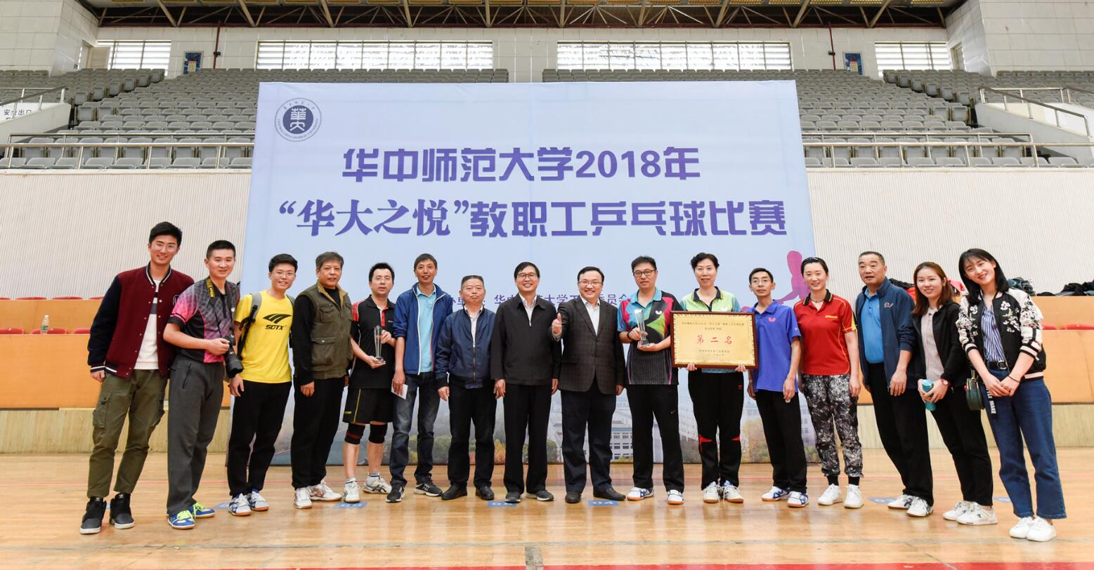 10月26日,华中师范大学2018年“华大之悦”教职工乒乓球比赛在佑铭体育馆隆重开幕。经过两天的激烈争夺,党政机关代表队再创佳绩,荣获亚军。
