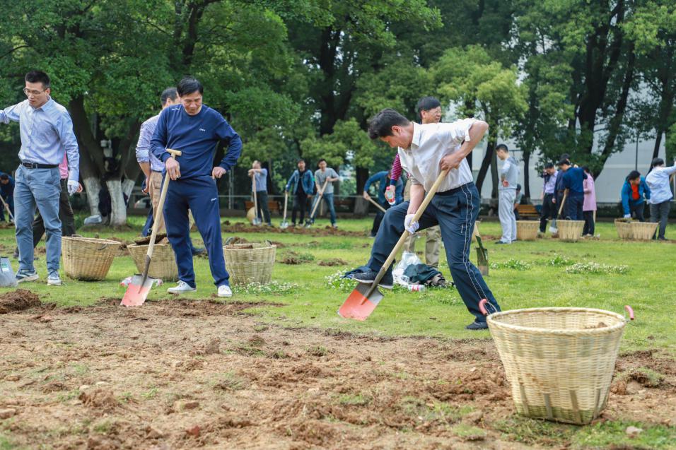 4月30日下午,机关干部职工手持铁锹和竹筐在博雅广场上挥汗如雨。在“五一国际劳动节”来临之际,机关党委、机关工会联合学校相关部门开展美化校园集体劳动活动。