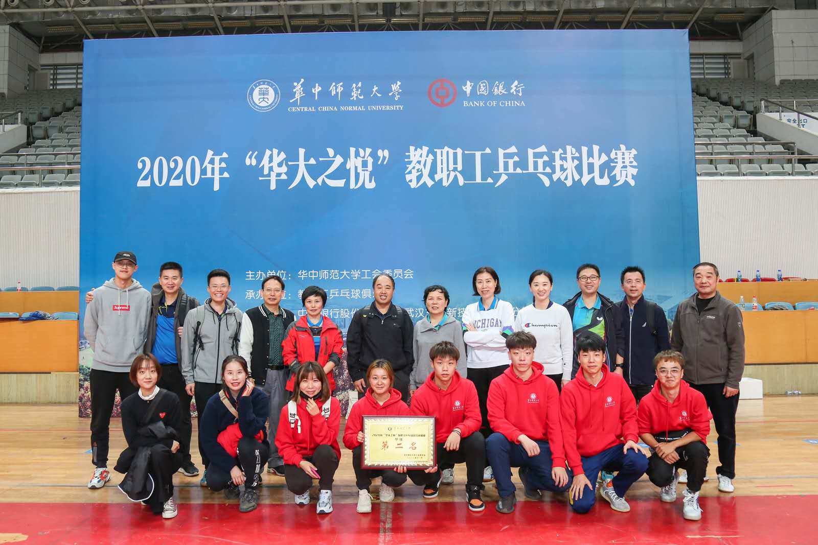 10月30日至31日,华中师范大学2020年“华大之悦”教职工乒乓球比赛在佑铭体育馆隆重举办。经过两天的激烈角逐,党政机关代表队克服了主力缺阵和阵容不齐的困难,连胜强队,夺得甲组混合团体亚军。