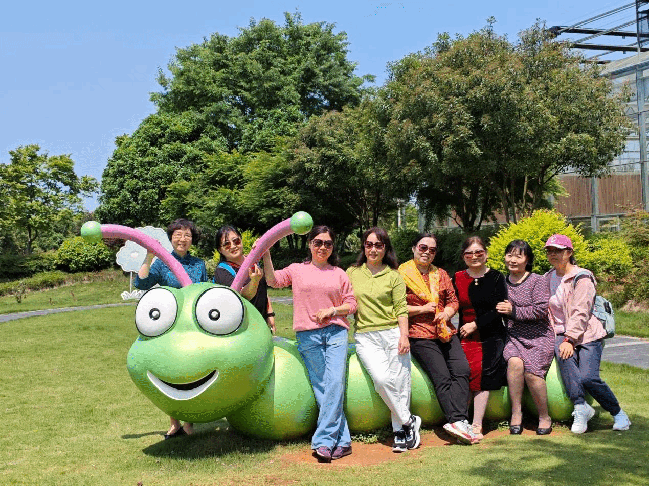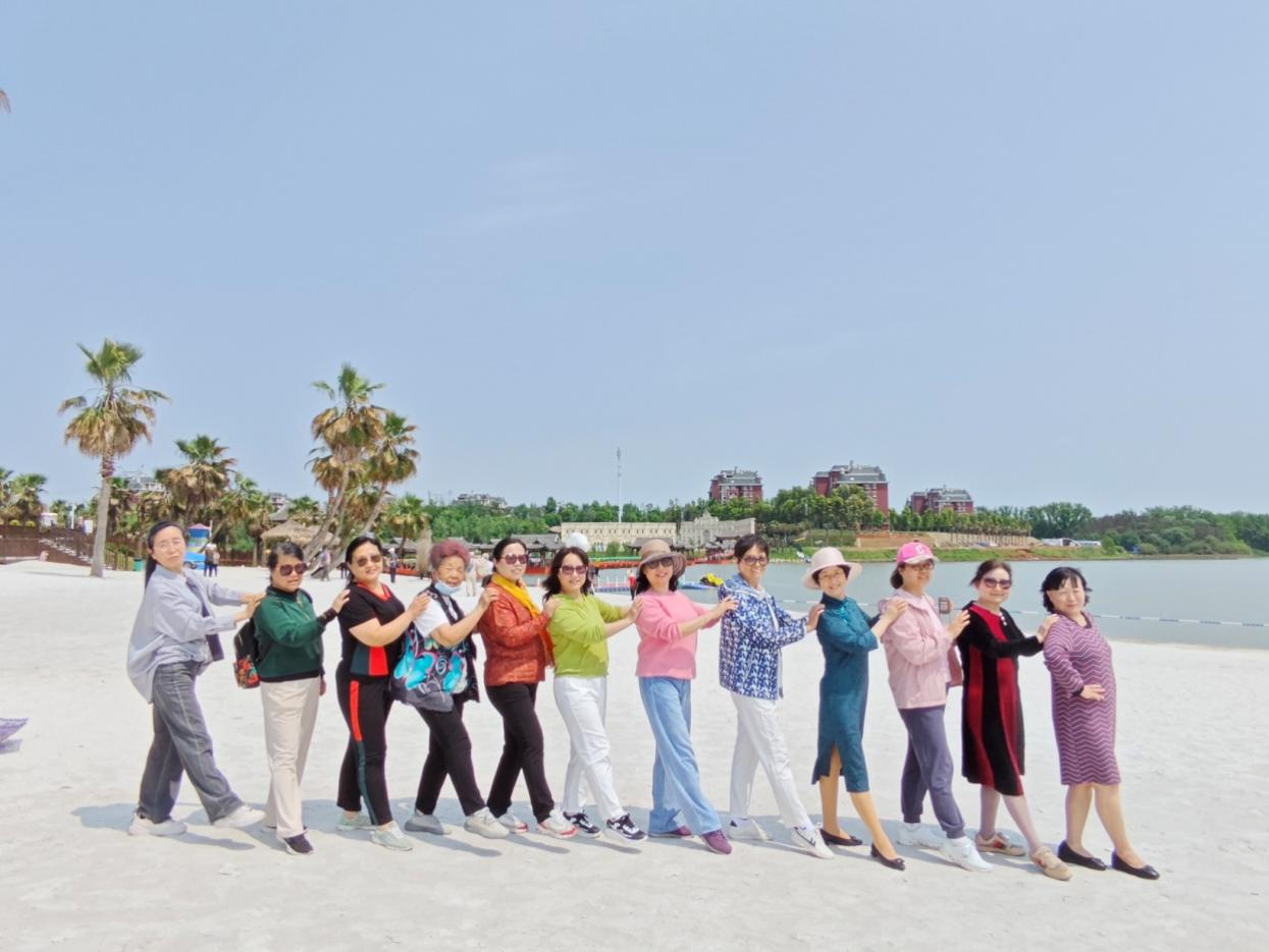 临近中午,老协安排老同志们县城用餐,体验当地饮食文化。餐毕休息片刻,大家乘车前往蜜泉湖乡村田野公园。下午1时由景区大门进入,一路伴随金银花香、竹林清爽,步行至银沙滩,老同志们或对镜欣赏,或三两汇集,在椰树下、沙滩上、蜜泉湖边拍照合影留念。路遇咸宁六小的四年级学生也来春游,老幼同行,长者慈爱,幼者礼貌,一问一答,别有趣味。老同志们一路欢声笑语不断,集合返程,仍兴致不减。