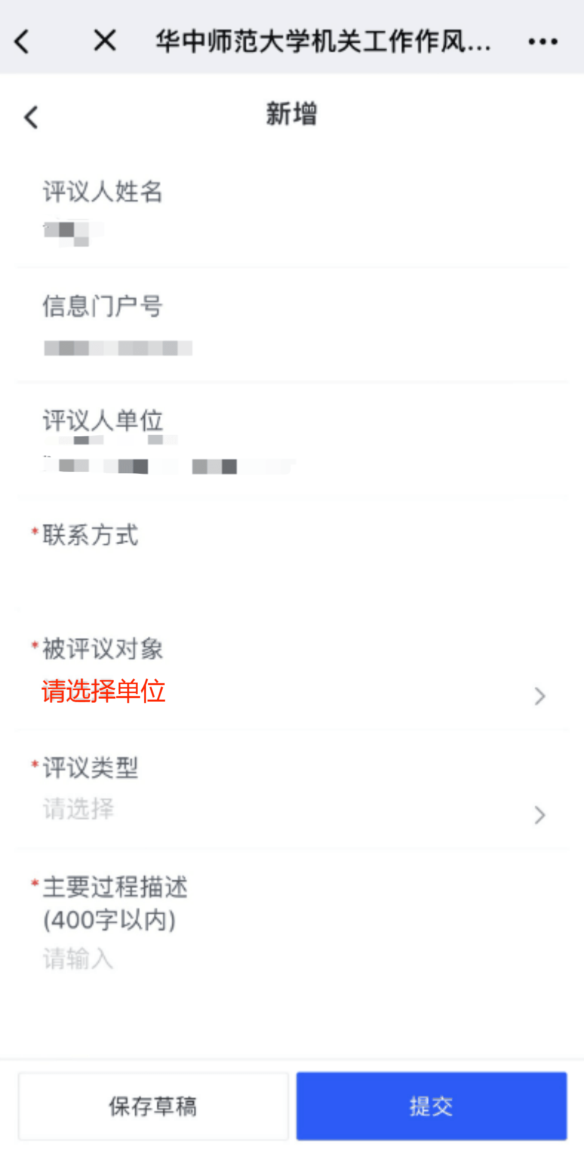 评议单位:在新增界面选择“被评议对象”为“单位”。