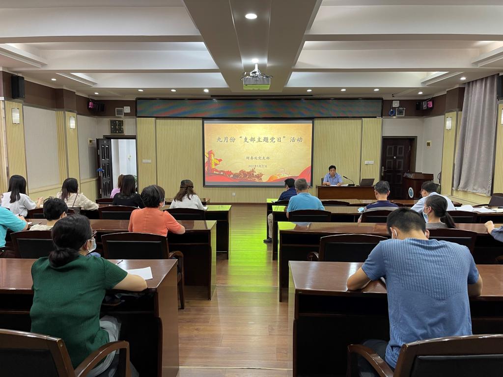 (通讯员 徐晨)9月22日下午,财务处党支部在行政楼二楼会议室召开9月份支部主题党日活动。会议由支部书记万才新主持,全体党员参会。