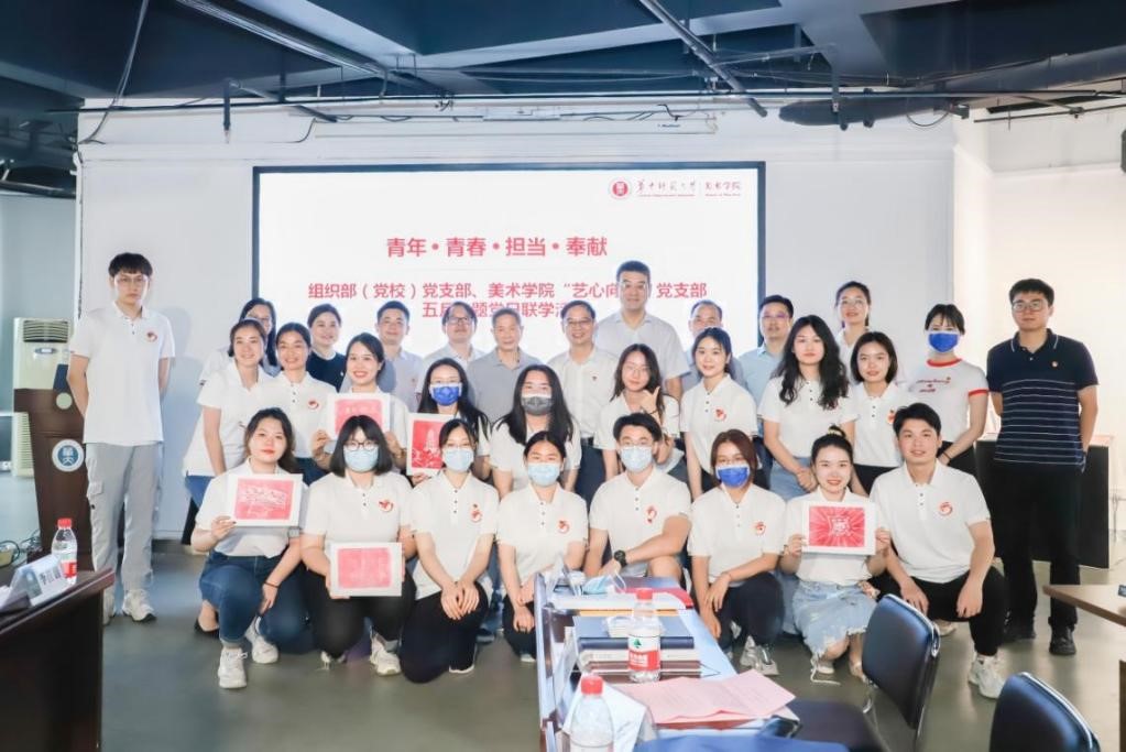 (通讯员 肖微)为深入学习贯彻习近平总书记在考察中国人民大学和在庆祝中国共产主义青年团成立100周年大会上的重要讲话精神,5月31日下午,组织部(党校)党支部、美术学院“艺心向党”学生党支部共同开展“青年·青春·担当·奉献”主题党日联学活动。两个党支部全体党员、“艺心向党”学生党支部指导教师、美术学院全体辅导员、学生入党积极分子代表、团员代表等参加了联学活动。校党委副书记查道林以普通党员身份参加本次支部活动。