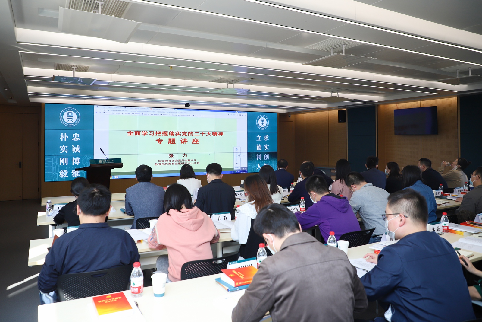 开班仪式结束后,全体学员一起聆听了国家教育咨询委员会秘书长、教育部原教育发展研究中心主任张力主讲的《全面学习把握落实党的二十大精神》专题报告。