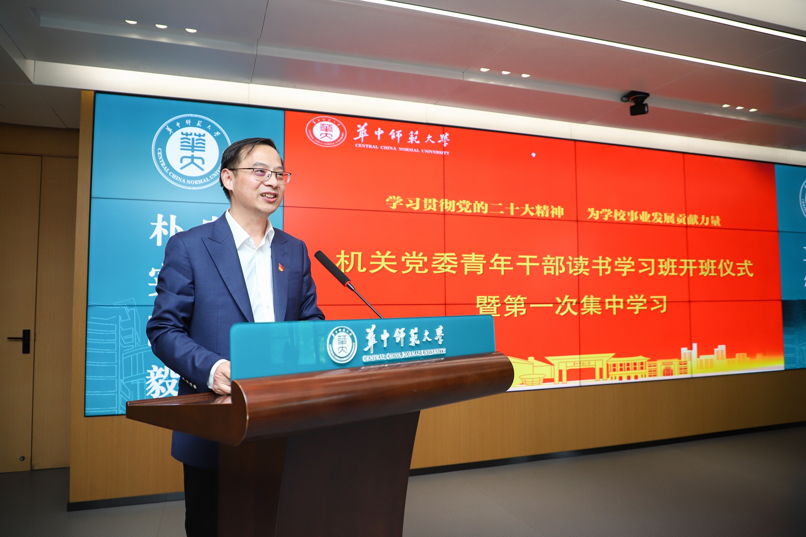 金秋十月,丹桂飘香。为深入学习贯彻党的二十大精神,提升机关青年干部的政治素养、专业技能、管理水平,推进学习型机关建设。10月31日,机关党委青年干部读书学习班开班仪式暨第一次集中学习活动在九号楼融媒体中心指挥大厅举行,校党委副书记查道林出席并讲话,党委宣传部常务副部长王长华、青年干部读书学习班全体学员参加,活动由机关党委书记卢子洲主持。