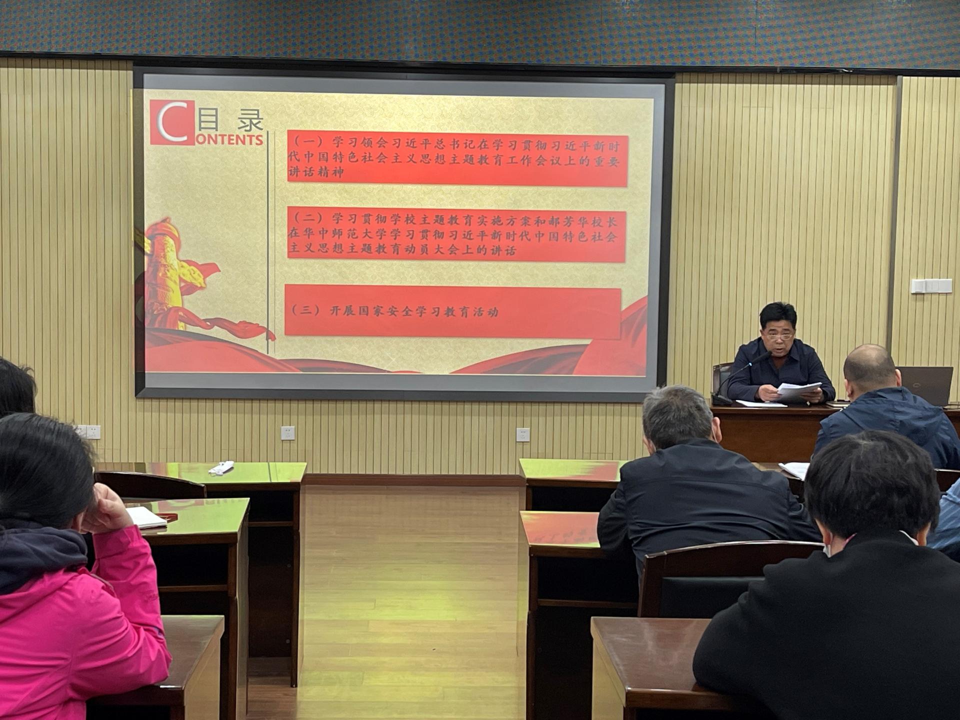 万才新首先领学了习近平总书记在学习贯彻习近平新时代中国特色社会主义思想主题教育工作会议上的重要讲话精神。他指出,习近平总书记的重要讲话深刻阐明了开展主题教育的重大意义、根本任务、目标要求和方法措施,为开展好主题教育指明了方向、提供了根本遵循。全体党员同志要认真学习、深刻领会开展主题教育的重大政治意义、理论意义和实践意义,深刻领悟“两个确立”的决定性意义,坚决做到“两个维护”,切实把思想和行动统一到习近平总书记重要讲话精神和党中央决策部署上来。同时,传达了郝芳华校长在学校学习贯彻习近平新时代中国特色社会主义思想主题教育动员大会上的讲话精神。他强调,要深刻认识主题教育的重大意义,准确把握主题教育的目标要求,全面落实主题教育的各项任务,把理论学习、调查研究、推动发展、检视整改和建章立制贯通起来,围绕中心任务,服务发展大局,以优异的成绩迎接建校120周年,努力开创学校事业发展新局面。