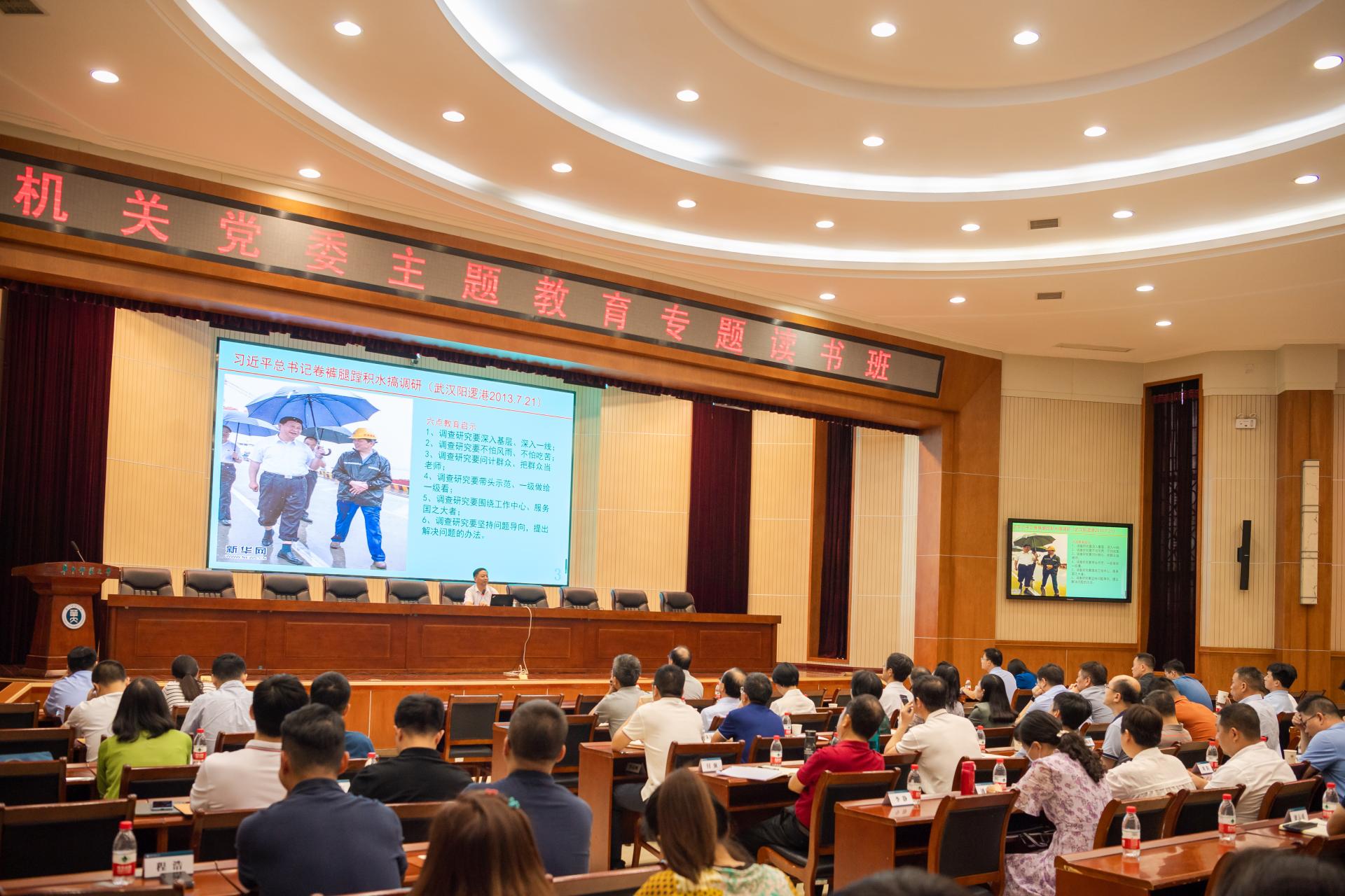 为扎实推进主题教育走深走实,做到学思践悟、以学促干,不断提高调查研究针对性、实效性,6月15日下午,机关党委在科学会堂一楼报告厅举办主题教育专题读书班。湖北省委政研室原一级调研员余爱民以《大兴调查研究——学习习近平总书记关于调查研究重要论述的体会》为题为机关全体中层领导干部作专题辅导报告。机关党委书记卢子洲主持学习。