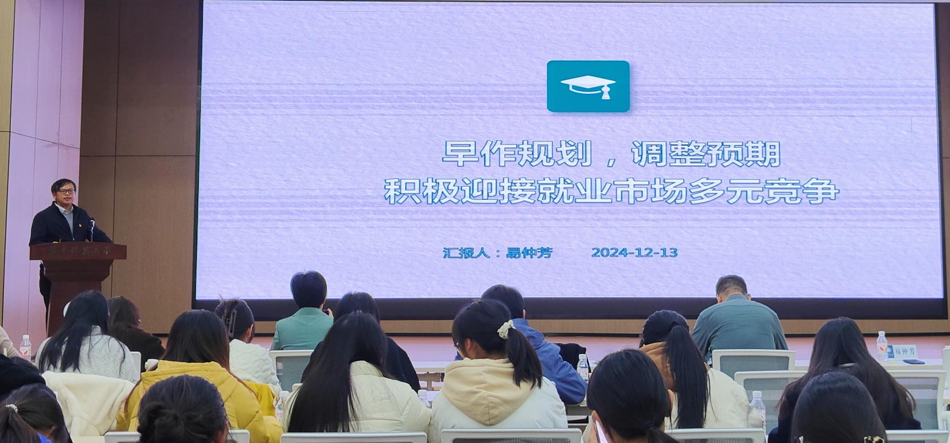 易仲芳就“早作规划,调整预期,积极迎接就业市场多元竞争”这一主题,为即将步入社会的党员同学们上了一堂实用的党课。他结合当前就业市场的形势和趋势,为同学们提供了宝贵的就业指导和建议,鼓励大家要树立正确的就业观念,积极面对就业市场的多元竞争。