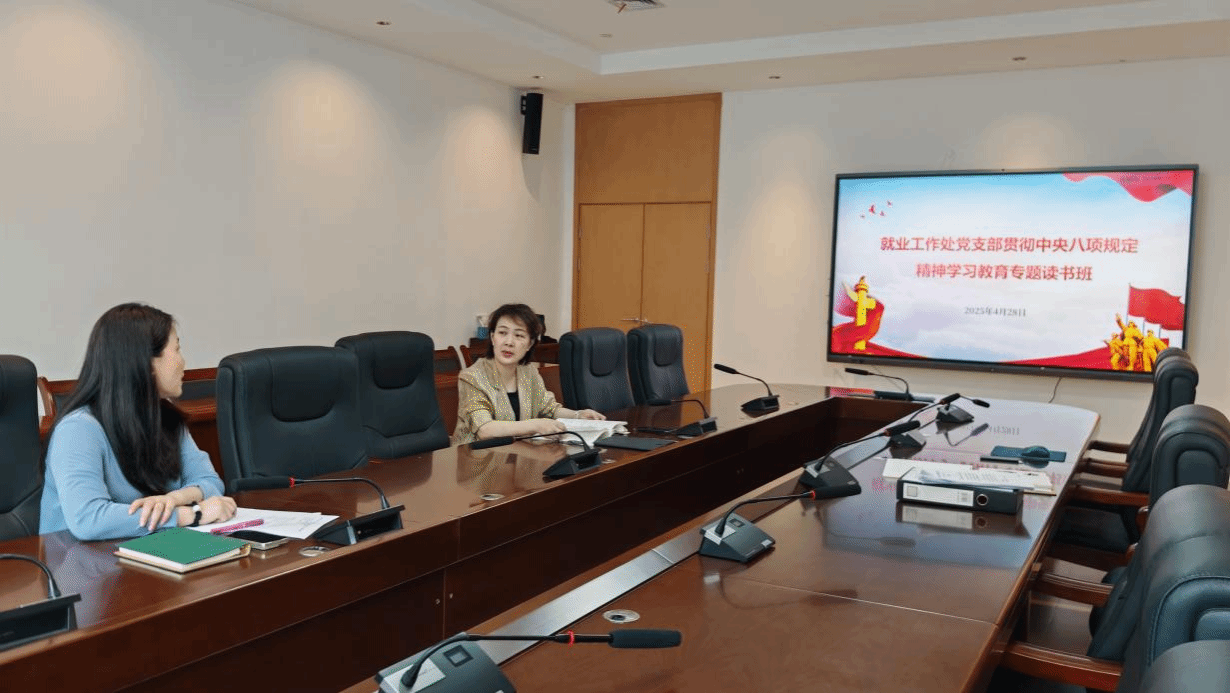 (通讯员 周健、卢雯)4月28日上午,就业工作处党支部在新大活B203会议室举行深入贯彻中央八项规定精神学习教育读书班,读书班由党支部书记游丽主持。