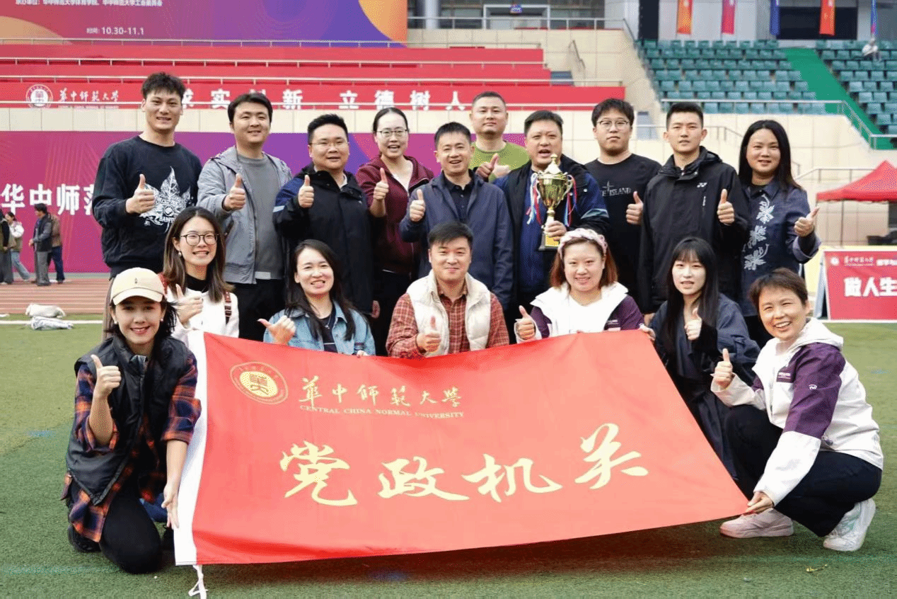 华中师范大学党政机关代表队在2025年运动会中获教工团体总分第一名